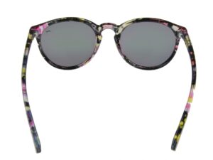 The “colorful patterned” model has mirrored lenses, while the “purple patterned” model has tinted lenses.
